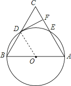 【題目】如圖,在△ABC中,以AB為直徑的⊙O分別于BC,AC相交于點D,E,BD=CD,過點D作⊙O的切線交邊AC于點F.![]()