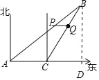 (2)甲船在航行至P處,發現乙船在其正東方向的Q處,問此時兩船相距多少?