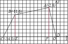 【題目】如圖,四邊形ABCD各頂點的坐標分別為(-2,8),(-11,6),(-14,0),(0,0).