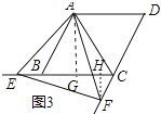 (3)如圖3,當點E在線段CB的延長線上,且∠EAB=15°時,求點F到BC的距離.