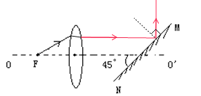 【題目】如圖所示,F為凸透鏡L的焦點,OO′為凸透鏡的主光軸,AB為射向凸透鏡且過焦點的光線,在凸透鏡的右側(cè)有一平面鏡MN和主光軸OO′成45°,請畫出經(jīng)凸透鏡折射后和經(jīng)平面鏡反射后的完整光路圖。