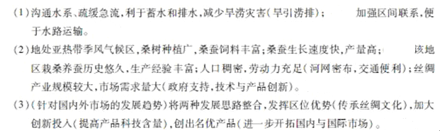(2)分析杭嘉湖地區絲綢業發展的有利條件。